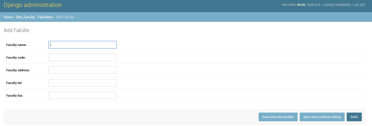 class Meta: verbose_name =”Fakülte” verbose_name_plural=”Fakülteler”
