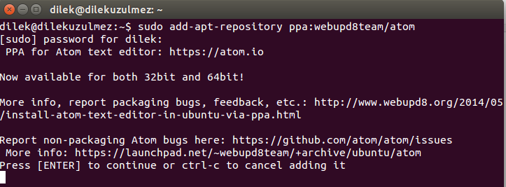 $ sudo add-apt-repository ppa:webupd8team/atom